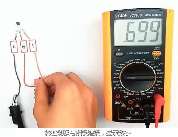 依然選擇二極管擋,用紅表筆接陽極,黑表筆接陰極,短接控制極與陽極,觀察萬用表示數。如果顯示數字,說明晶閘管的質量良好。
