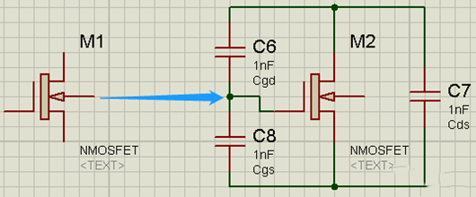 從MOS的啟動波形可以看出MOS管開啟過程主要受Cgs和Cgd共同影響。如果延長開啟過程主要是延長t1—t2階段和t2—t3階段,在負(fù)載確定的情況下主要是增大Cgs和Cgd等效電容來實(shí)現(xiàn)。